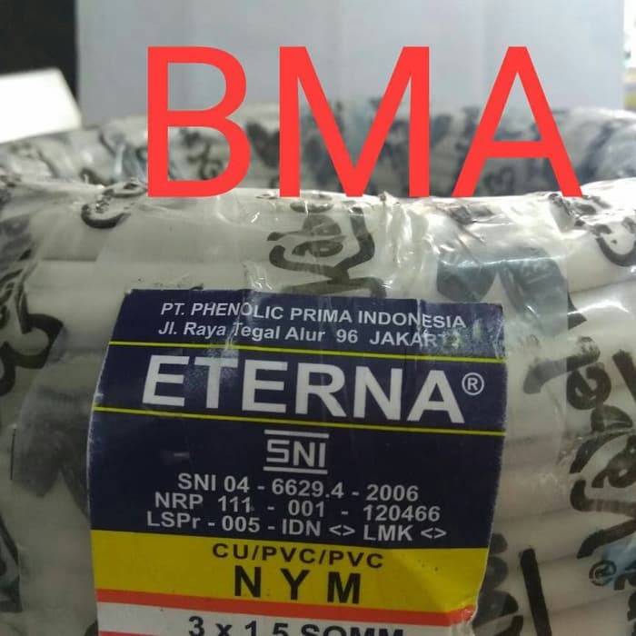 Deskripsi Kabel ETERNA/PRIMA NYM 3X1,5 ECERAN, PER 1METERKabel eceran/meteranKabel NYM 3 x 1.5 mmmerk ETERNA/PRIMA (tergantung stock)kabel tunggal isi 3tebal kawat= 1.5 mmkulit warna putihKekuatan maksimal 1500wattAREA BANDUNG BISA MENGGUNAKAN GOJEK/GOSEND.*pengiriman melalui Gojek/Grab Instant harap order sebelum jam 17.00*pengiriman melalu Gojek Sameday harap order sebelum jam 14.30*SiCepat,AnterAja dipickup oleh kurir biasanya pada sore hari.(jika sampai sore tidak ada yang pickup, kami sendiri yang akan masukkan ke gudang pengir