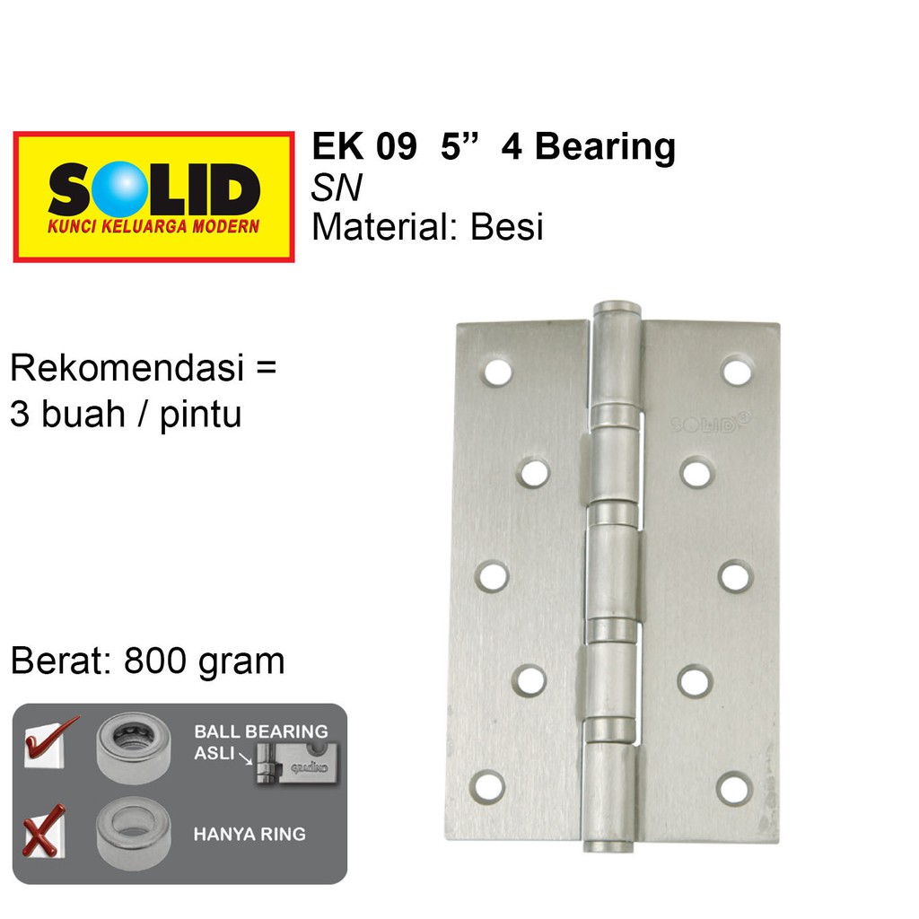 Engsel Pintu merek SOLID berbahan Besi dengan 3 varian warnaSN : Satin Nickle ( Putih Dof )GP : Gold Plated ( Kuning kilap )CHR : Chrome ( Putih kilap )Mohon chat untuk konfirmasi kesediaan stock sebelum