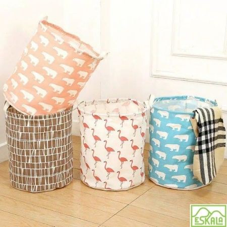 Name: Keranjang Laundry Bulat Pakaian Multifungsi Lipat Canvas Laundry Bag 35x45cm