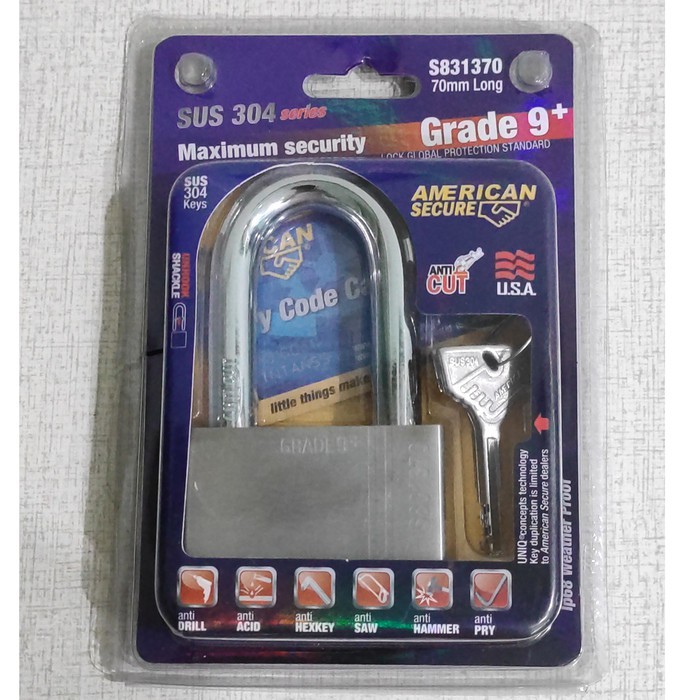 Name: Gembok American Secure 70mm Panjang -gembok Anti Cairan Setan Anti Cut