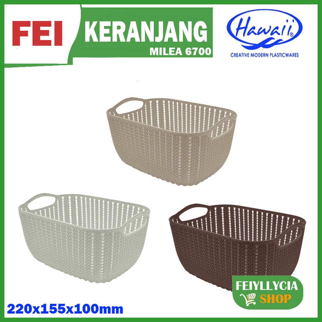 Hawaii Keranjang Serbaguna Milea (S) merupakan keranjang berukuran sedang serbaguna yang terbuat dari bahan plastik berkualitas dan kuat. Desainnya yang menarik, warna yang berbeda sangat cocok juga untuk menghiasi dekorasi ruangan Anda. Dilengkapi handle kiri kanan sehingga memudahkan Anda untuk memindahkan keranjang kemana saja. Bisa untuk menyimpan berbagai keperluan Anda dirumah.Deskripsi :- Bahan : Plastik- Tersedia warna:1. Coklat tua2. Abu3. Putih- Dimensi: 22 x 15.5 x 10 cmHarga satuan MOHON DI PERHATIKAN (MEMBELI = SETUJU)* Mohon untuk membaca dahulu* Karena kami tidak berharap untuk mengecewakan customer kami* Pesanan sudah kami QC baik jumlah maupun kualitas, (kasih note pilihan warna alternatif, jikalau kosong kami akan ganti dengan warna yg mirip/ random)* Kerusakan/kehilangan paket dlm pengiriman diluar tanggung jawab kami (bisa klaim langsung ke pihak kurir yg di pilih)* Tips belanja hemat Beli barang lebih dari satu untuk menghemat ongkos kirim* Komplainan wajib disertai video buka paketan dan bukti resi dari toko.* Kami tidak menerima komplainan / penukaran yang disebabkan Customer / Pembeli tidak membaca keterangan yang sudah kami cant
