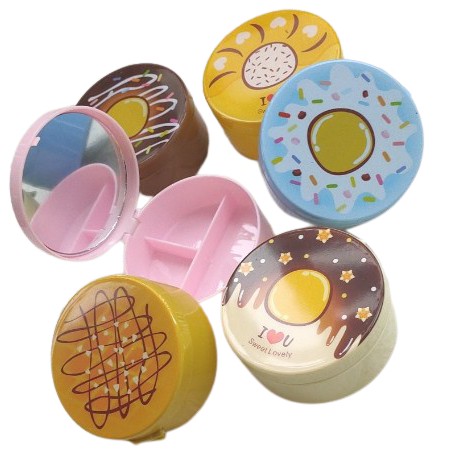 Mini Kotak Perhiasan Travel Jewelry Anting Kalung Cincin Box PraktisBahan : Plastikdan ada kaca di salah satu sisi kotak nya.Untuk wadah perhiasan nya bersekat sesuai gambarTerasedia dalam 2 Varian Model :KotakBulatDengan motif dan warna - warni cantik yang akan kami kirim random dalam setiap pemesanan nyaukuran Real :Kotakpxlxt = 7cm x 7cm x 3.5cmBulatdiaxt = 8cm x