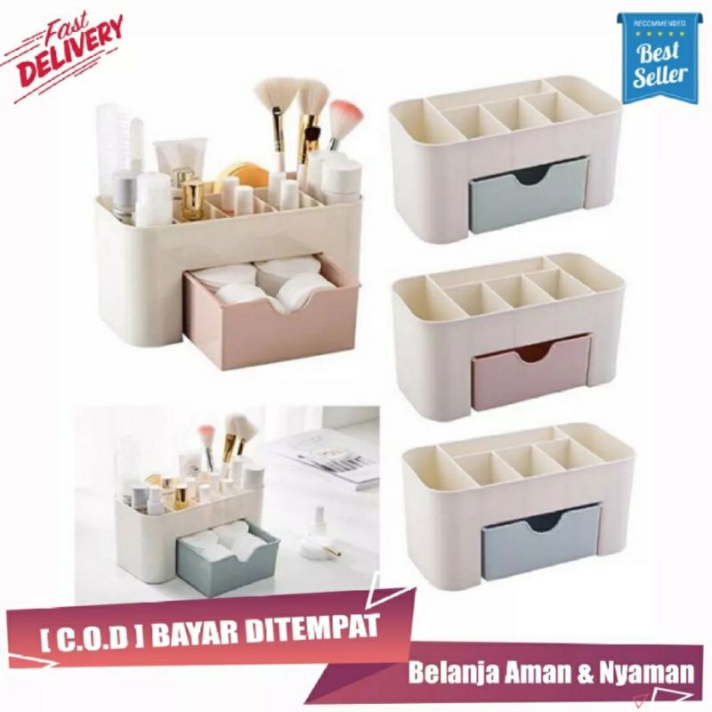 Rak Kosmetik Meja Multifungsi Make Up Desktop Storage OrganizerDeskripsi Produk :- Tersedia 3 warna ( Pink, Abu-abu dan Hijau )- Ukuran 21 x 10.5 x 10,5 CM- Terdapat laci dan 6 sekat tempat penyimpanan- Simple, praktis dan multifungsi dapat digunakan untuk tempat make up, perhiasan dan lainnya1 Kg muat