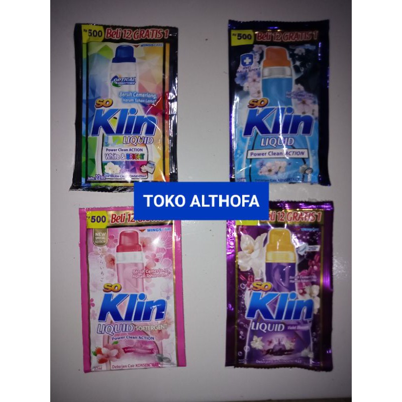 soklin liquid detergent 22ml All variant membuat pakaian bersih dan wangi tahan lama6 variant- Merah pome- Biru antibac- sakura - white & bright- Softergent- LavenderDi atas harga 1 Renceng isi 12 pcs gratis 1 pcs ya kak promo tergantung dari pabrik sewaktu waktu bisa berubahbarang selalu baru langsung dari pabrik #soklin cair#soklin liquid#deterjen