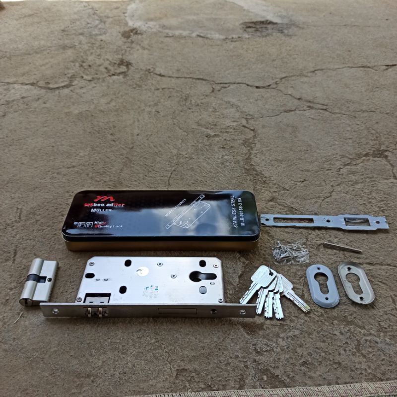 Harga barang ini bijianDan hanya kuncinya dan body kuncinya sajaTidak sekligus dengan gagang pintunyaKarena gagang pintunya kami jual pada link produk yang berbedaMerek muller atau mubeo adller MULLERMLR-9016S-3 SSTEPAK BESI WARNA HITAMLock body stainless steelThe best quality productWarna putihBerat efektif per biji 1 KGKunci nya isi 5 bijiPenutup lobang kunci cilinder nya 2 biji platJarak antara pelor dan kunci bawahnya 5 cm dihitung dari ujung bawah dan ujung atasMenurut ukuran tukang kayuBiasa disebut ukuran besarBukan tanggungBukan kecilKetebalan masuk ke dalam pintu kayu nya 1,4 cm atau