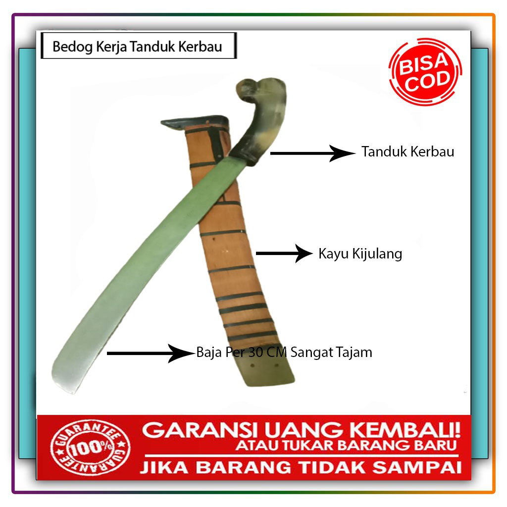 Bedog Kerja Ukuran 30 CmKami hanya menjual produk asli Berkualitas terbuat dari bahan bahan pilihan terbaik sehingga sampai ketangan konsumen dengan aman dan keadaan terbaik Deskripsi Produk- Gagang terbuat dari Full Tanduk Kerbau- Bahan bilah terbuat dari Baja Per Bisa slingsing kertas /krok bulu- Panjang bilah 30 CM - Sarung Terbuat Dari Kayu Kijulang Asesoris TandukSelamat Belanja :)#