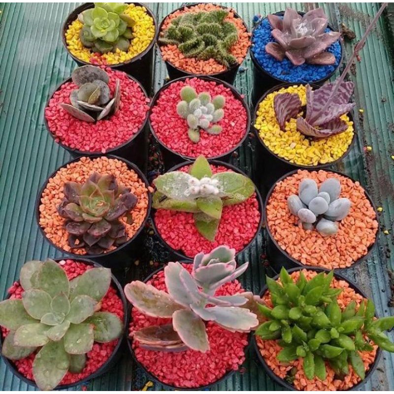 ready paketan sekulen mini harga sudah termasuk pot dan pasir warnacatatan tanaman minidi kirim berikut pot 12 pcsdan pasir warna secukup nya kiloan #sekulen#sekulenmini#kaktu