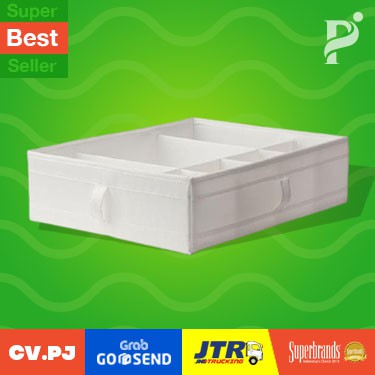 Fitur utamaKompartemen membantu Anda merapikan dan memilah kaos kaki, lingerie dan kaos kaki serta menyatukannya dalam satu tempat. Gunakan dengan produk lainnya untuk solusi penyimpanan lemari pakaian.Ukuran produkLebar:44 cmKedalaman:34 cmTinggi:11 cmBahan100% poliesterPetunjuk perawatanJangan dicuci. Jangan gunakan pemutih. Jangan keringkan dengan mesin Jangan disetrika. Jangan cuci kering. Lap bersih dengan larutan sabun lembut.Membantu anda menyusun kaos kaki, sabuk dan perhiasan di lemari pakaian atau lemari laci. Saat anda tidak memerlukan kotak dan ingin menghemat ruang, cukup buka restleting di bagian bawah dan lipat datar. Mudah untuk menarik bagaimanapun posisinya, karena kotak memiliki pegangan di kedua sisi rendah dan pan