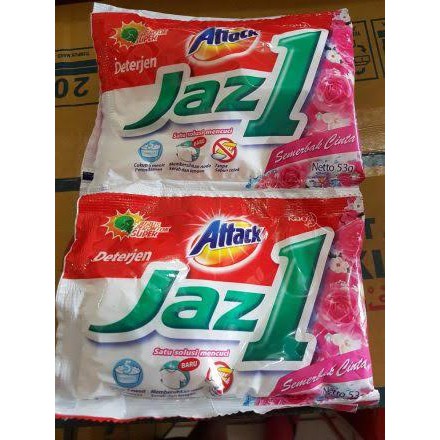Varian akan dikirim sesuai stok yang ada. Detergent attack jazz 1 renceng isi 6 pcsDeterjen bubukDiformulasikan lebih efektif untuk menghilangkan noda membandel hingga ke serat kain pakaianAttack Jaz1 juga terkandung semerbak bunga dalam setiap butir serbuk sehingga membuat pakaian Anda menjadi lebih wangi sepanjang hariAttack Jaz1 Semerbak Cinta ini mampu meluruhkan kotoran pada kerah dan lengan pakaian sejak direndam, tanpa perlu ditambahkan sabun