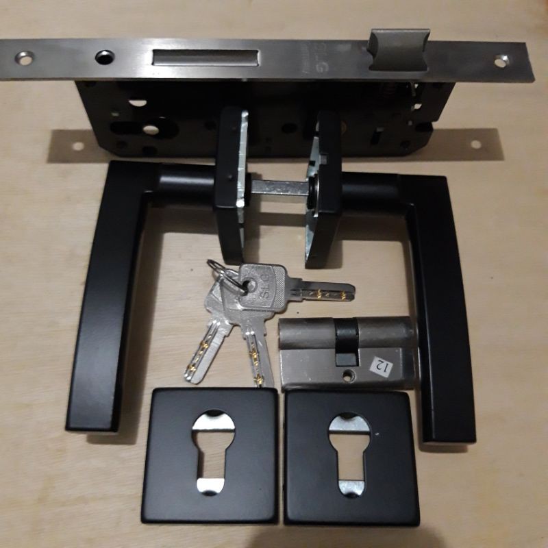 -gagang bahan babet-body kunci plat stainless-anak kunci 3 pcs-ukuran kunci pintu